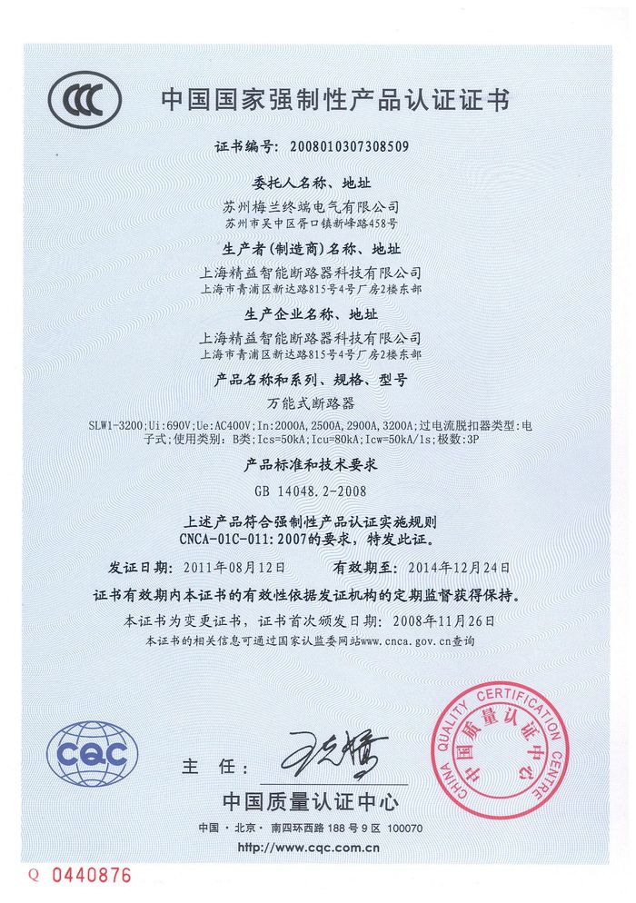 SLW1-3200萬能斷路器資質(zhì)證書