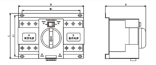 開(kāi)關(guān)工作有三個(gè)狀態(tài)位置供用戶(hù)選擇:常用電源(N)合、雙分、備用電源(R】合,開(kāi)關(guān)具