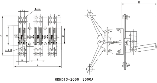 MRHD系列單投刀開關(guān)適用于交流50Hz、額定電壓至380V、直流至220V,額定電流至3000A的成套配電裝置中,作為不頻繁地手動(dòng)接通和分?jǐn)嘟?、直流電路或作隔離開關(guān)用。其中: