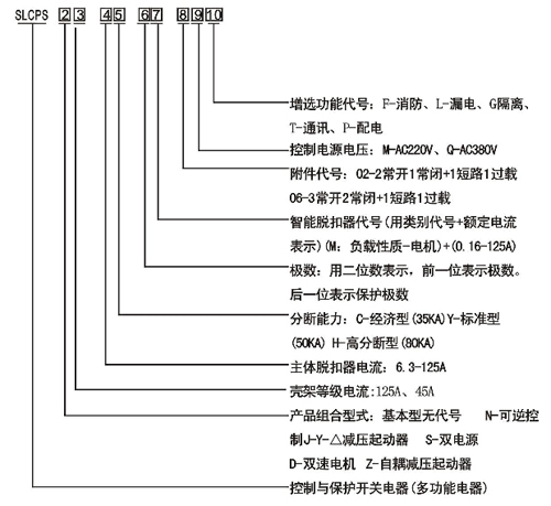 用戶在訂貨時(shí)應(yīng)寫明SLCPS控制與保護(hù)開(kāi)關(guān)電器的產(chǎn)品型號(hào)、規(guī)格、短路脫扣器額定電流、智能控制器額定工作電流、負(fù)載性質(zhì)、線圈控制電壓、接線方式等內(nèi)容。