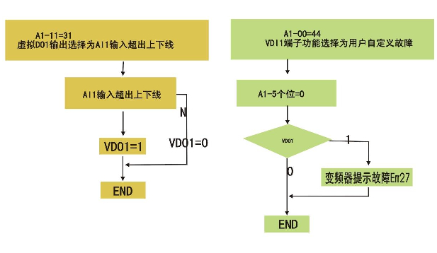 實現(xiàn)Al1超出上下限時變頻器提示故障Err27